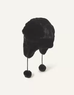 Accessories Faux Fur Pom-Pom Beanie Hat Black