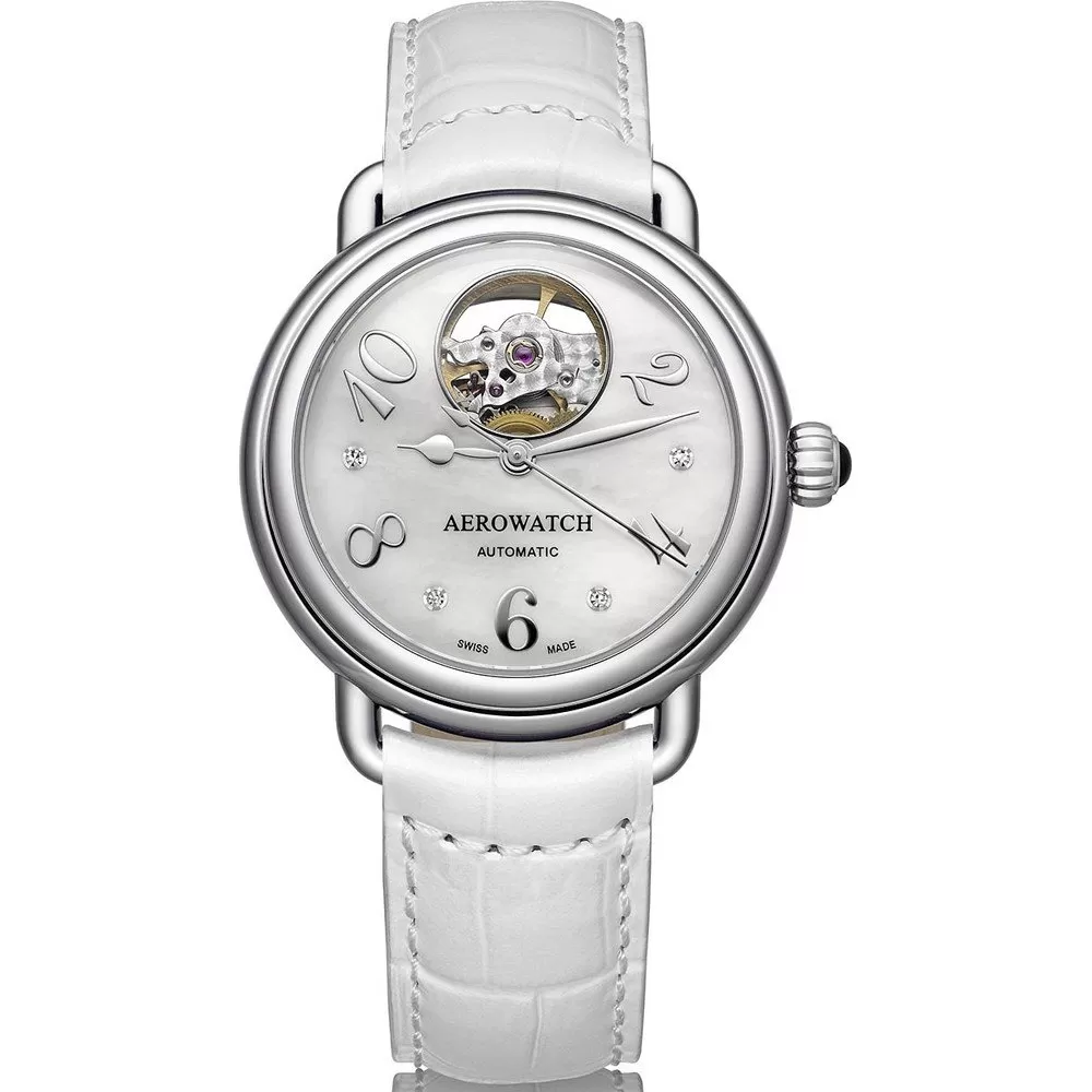 This Aerowatch watch has a case made of stainless steel with a diameter of 35 mm and is fitted with a leather band. Inside the case lies a Sellita movement and the watch features a Sapphire crystal.