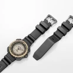 This Citizen watch has a case made of Super Titanium with a diameter of 45.8 mm and is fitted with a rubber band. Inside the case lies a Citizen movement and the watch features a Mineral crystal.