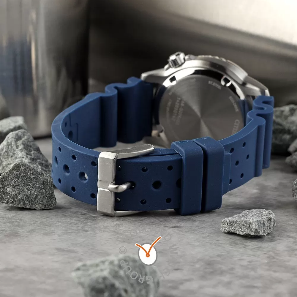 This Citizen watch has a case made of stainless steel with a diameter of 36.5 mm and is fitted with a rubber band. Inside the case lies a Citizen movement and the watch features a Mineral crystal.