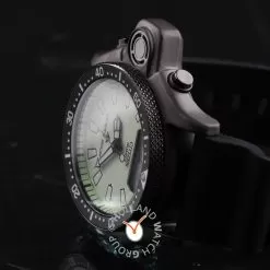 This Citizen watch has a case made of stainless steel with a diameter of 44 mm and is fitted with a rubber band. Inside the case lies a Citizen movement and the watch features a Mineral crystal.