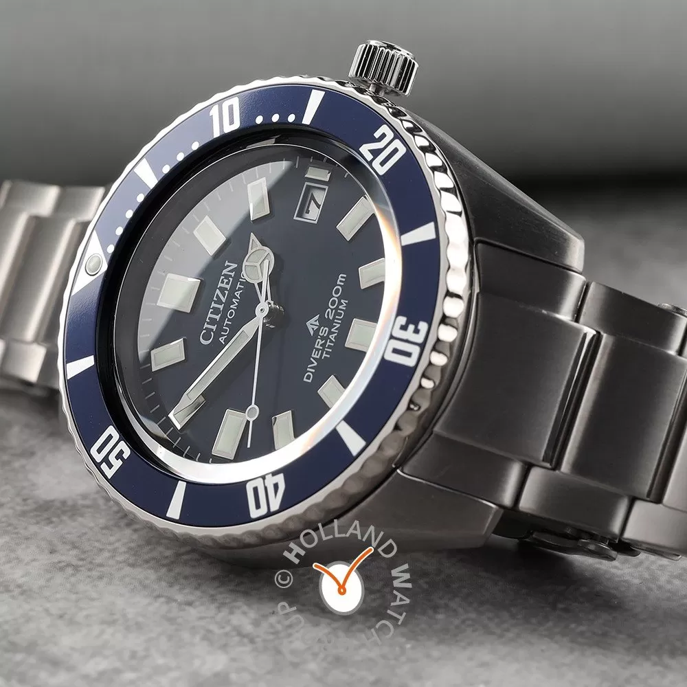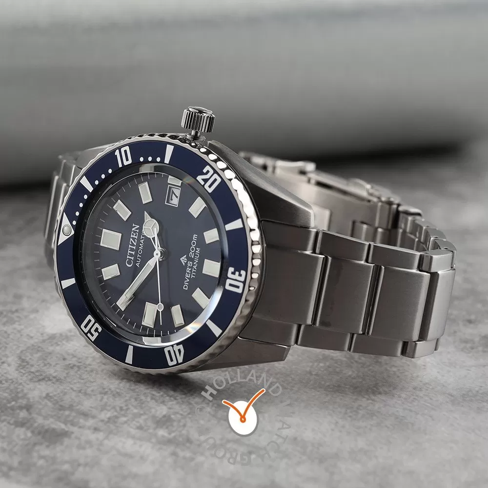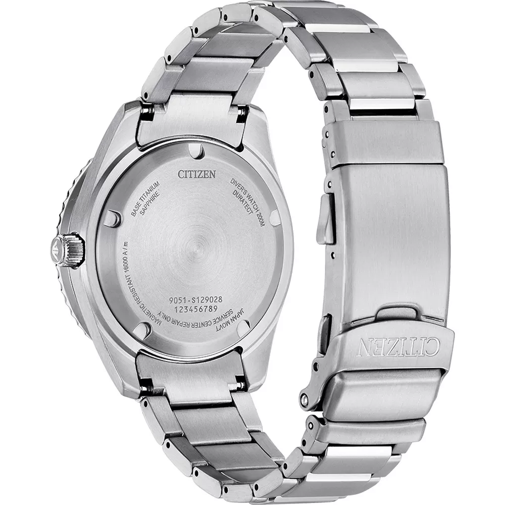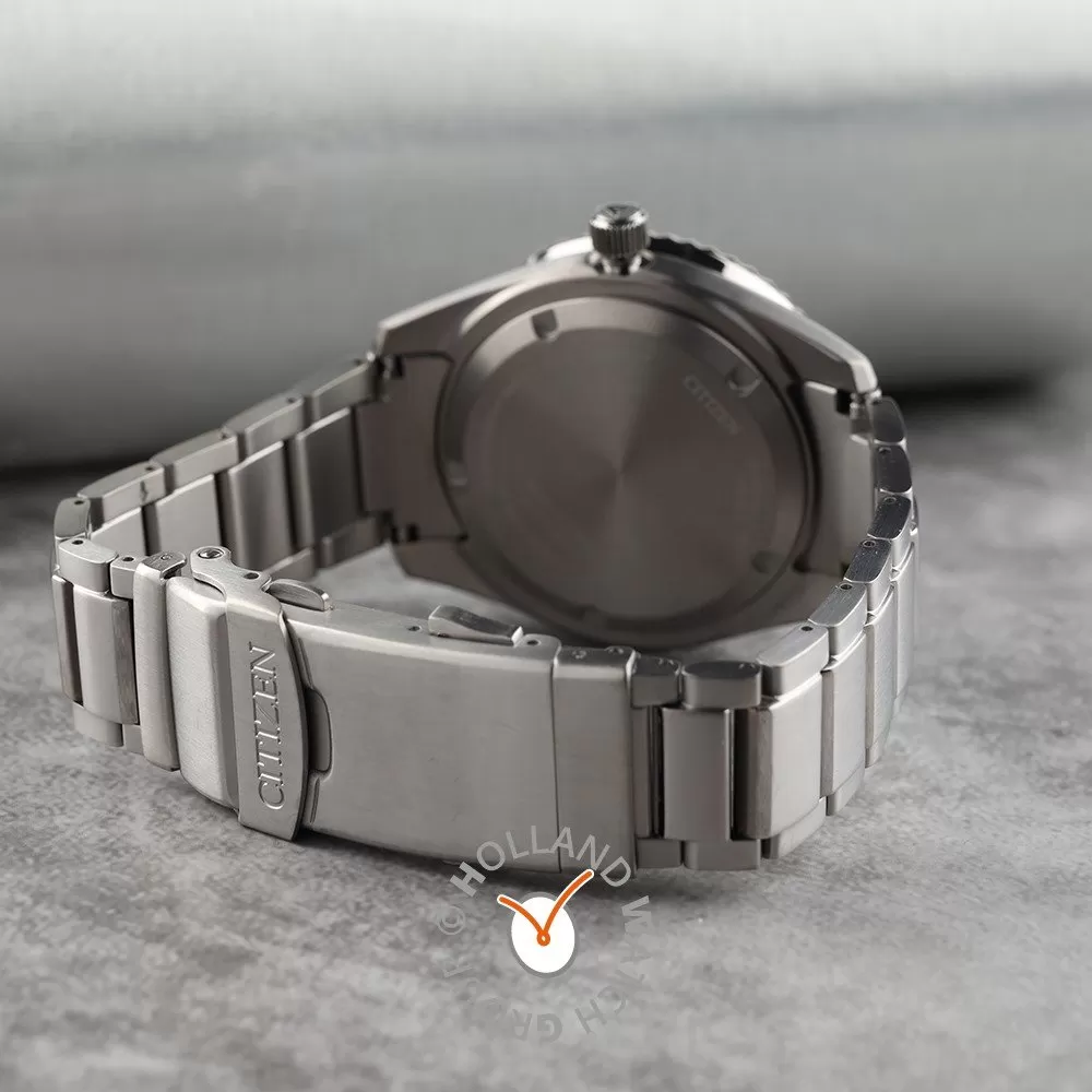 This Citizen watch has a Super Titanium case 41 mm in diameter and is fitted with a titanium strap.