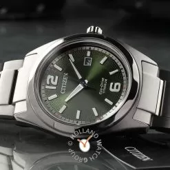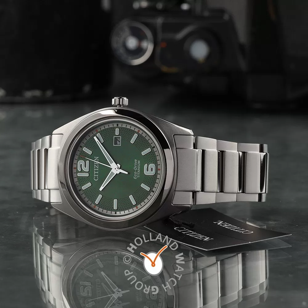This Citizen watch has a case made of titanium with a diameter of 42 mm and is fitted with a titanium band. Inside the case lies a Citizen movement and the watch features a Mineral crystal.