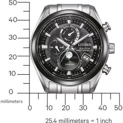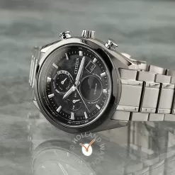 This Citizen watch has a case made of Super Titanium with a diameter of 43 mm and is fitted with a titanium band. Inside the case lies a Citizen movement and the watch features a Sapphire crystal.