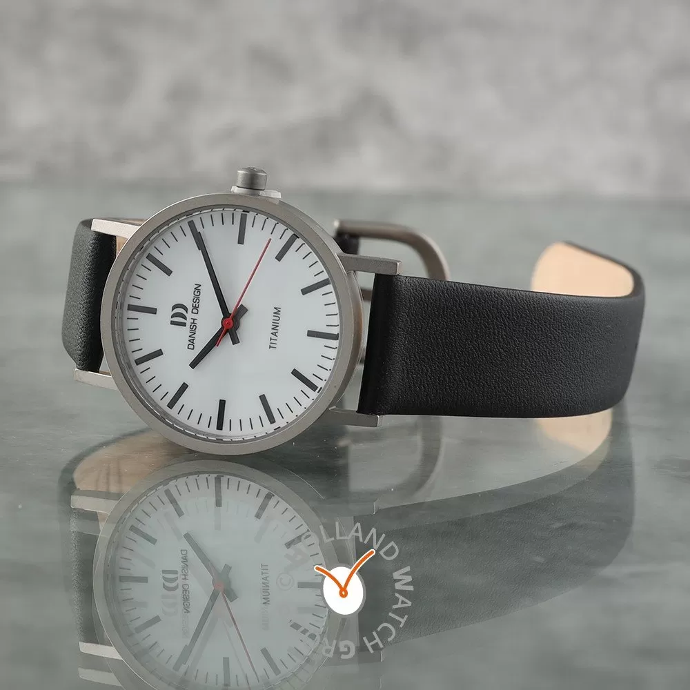 This Danish Design watch has a case made of titanium with a diameter of 30 mm and is fitted with a leather band. Inside the case lies a Seiko Instruments Inc. movement and the watch features a Mineral crystal.