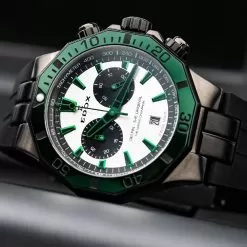 The watch is 20 ATM. This means the watch is suitable for diving. The watch comes with 2 Year Warranty.