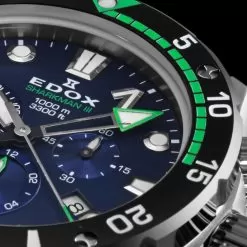 This Edox watch has a titanium case 45 mm in diameter and is fitted with a rubber strap. Inside the case lies a Ronda movement and the watch features a Sapphire crystal.