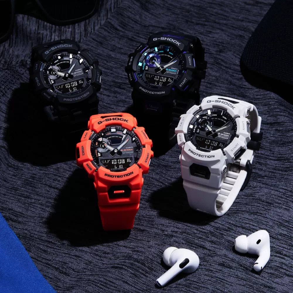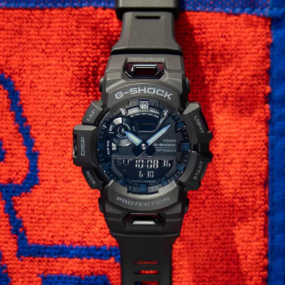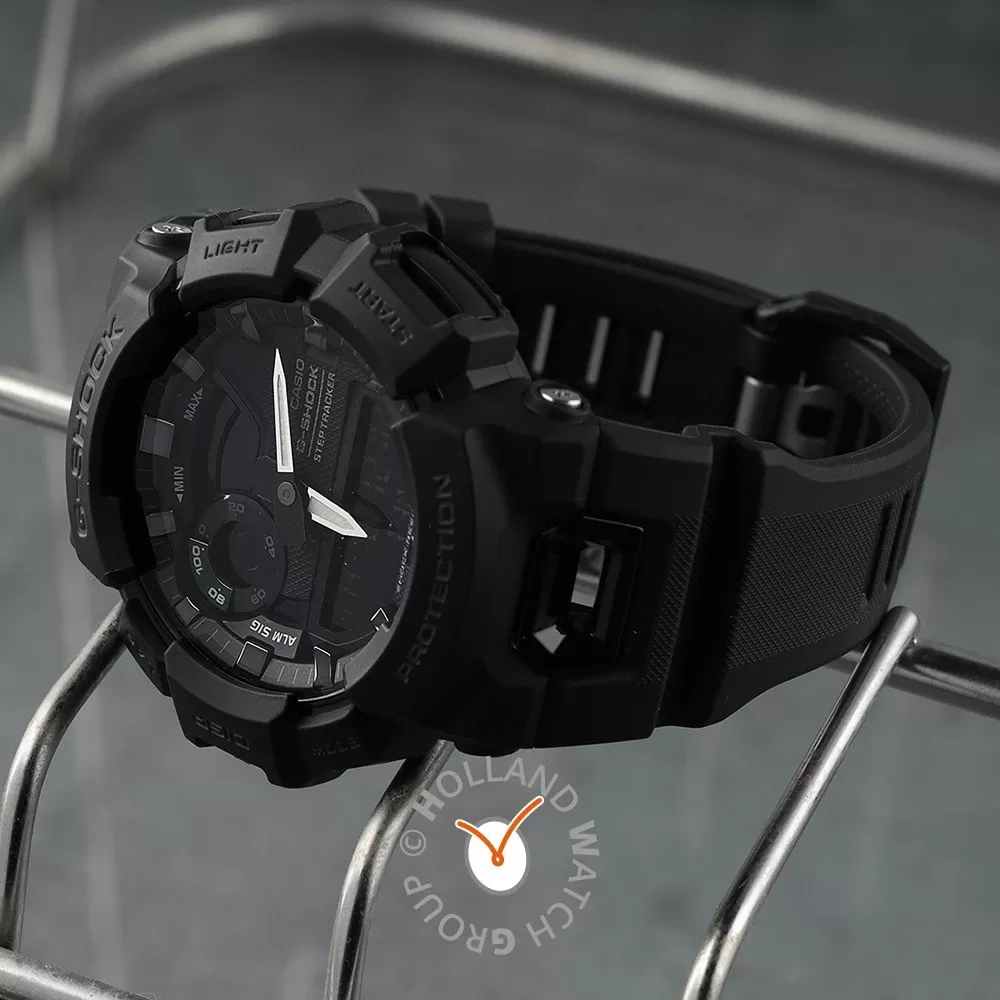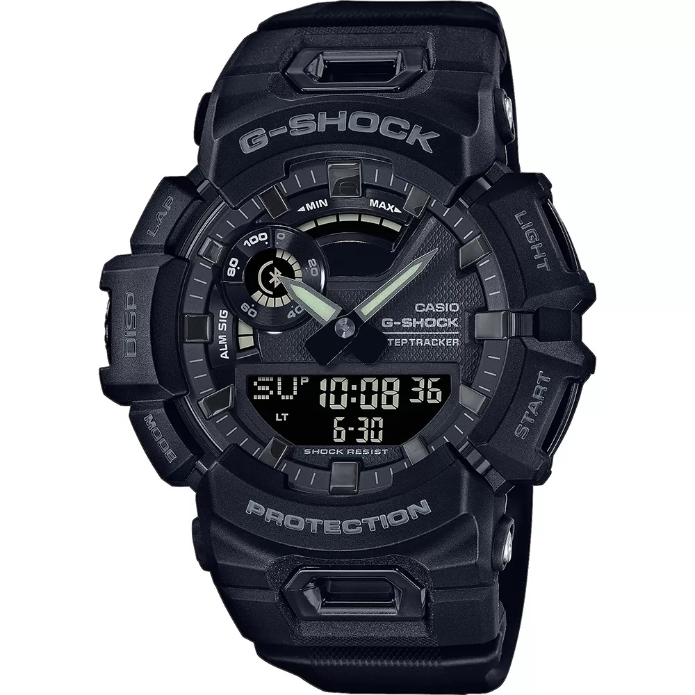 This G-Shock watch has a plastic case 48.9 mm in diameter and is fitted with a plastic / resin strap. Inside the case lies a Casio movement and the watch features a Mineral crystal.