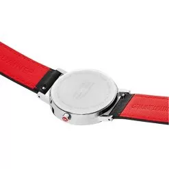 This Mondaine watch has a case made of stainless steel with a diameter of 36 mm and is fitted with a leather band. Inside the case lies a Ronda movement and the watch features a Hardened mineral crystal.