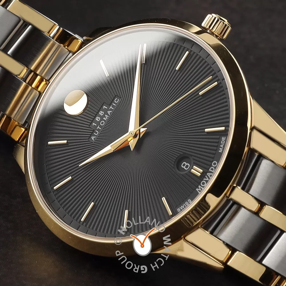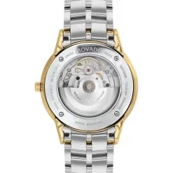 This Movado watch has a case made of stainless steel with a diameter of 39.5 mm and is fitted with a metal band. Inside the case lies a ETA movement and the watch features a Sapphire crystal.