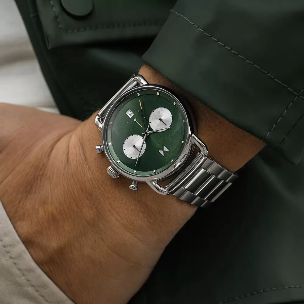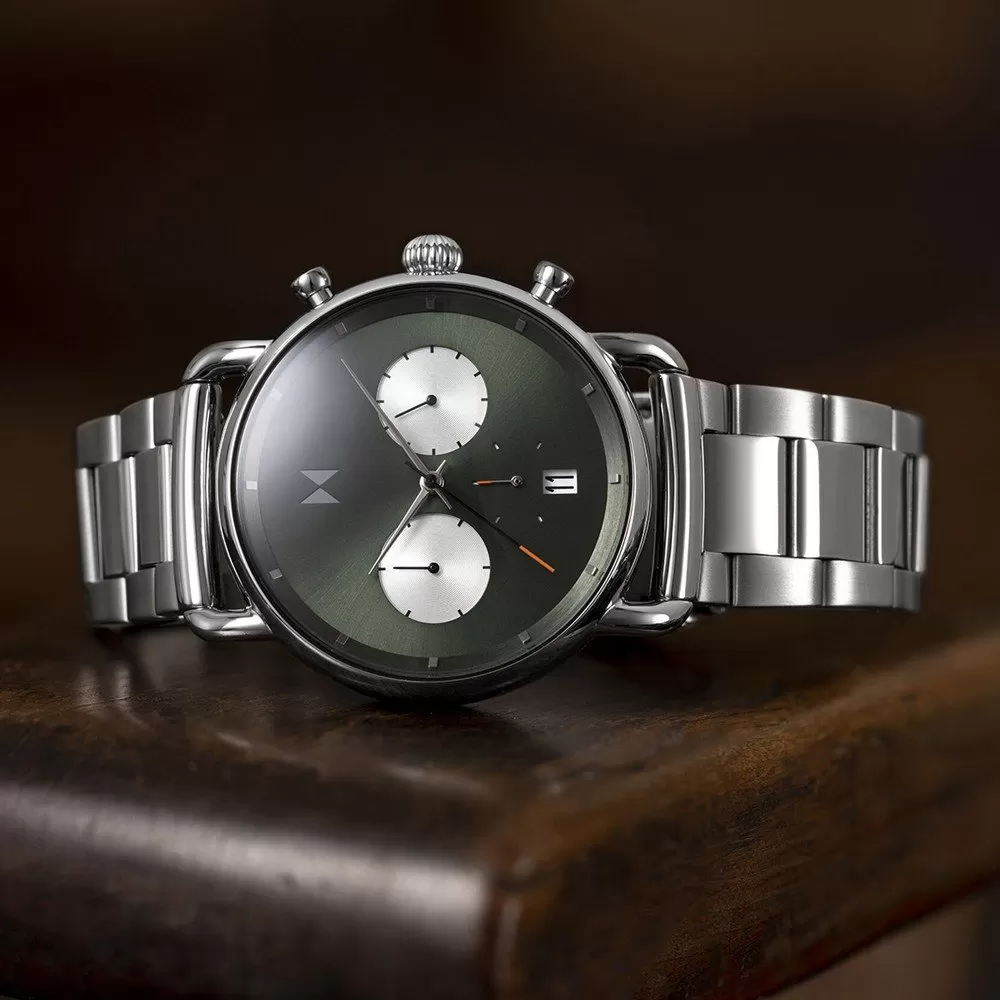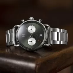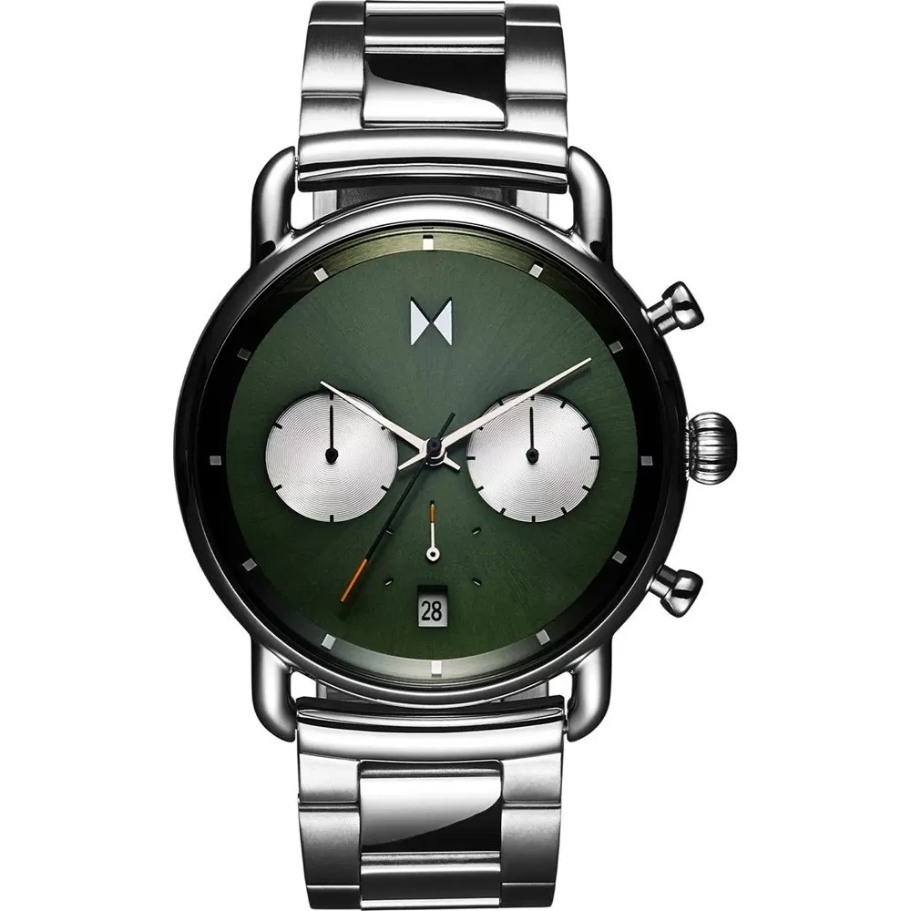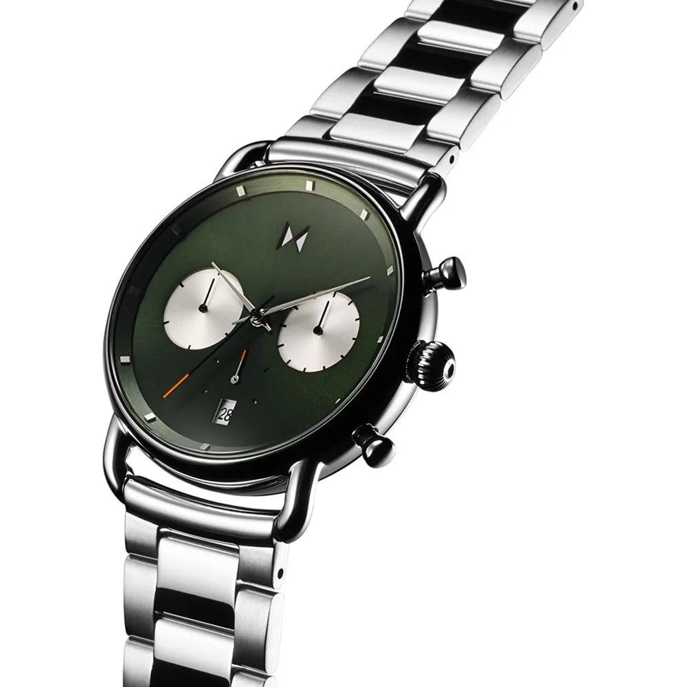 This MVMT watch has a case made of stainless steel with a diameter of 42 mm and is fitted with a metal band. Inside the case lies a Seiko Instruments Inc. movement and the watch features a Hardened mineral crystal.