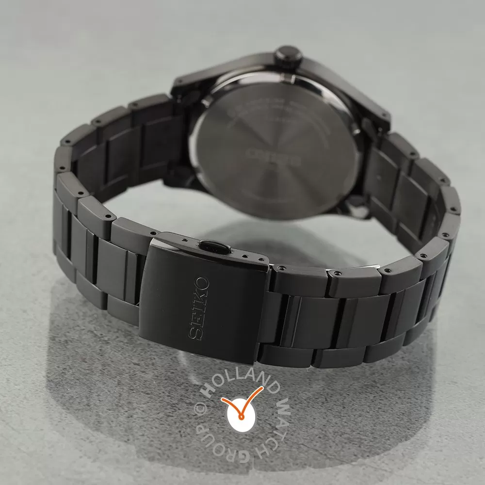 This Seiko watch has a case made of stainless steel with a diameter of 39 mm and is fitted with a metal band. Inside the case lies a Seiko movement and the watch features a Sapphire crystal.