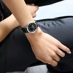 This Swiss Military Hanowa watch has a case made of stainless steel with a diameter of 35 mm and is fitted with a leather band. Inside the case lies a Ronda movement and the watch features a Sapphire crystal.