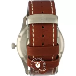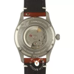 This Victorinox Swiss Army watch has a case made of stainless steel with a diameter of 42 mm and is fitted with a leather band. Inside the case lies a Sellita movement and the watch features a Sapphire crystal.