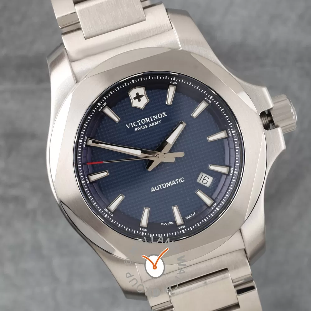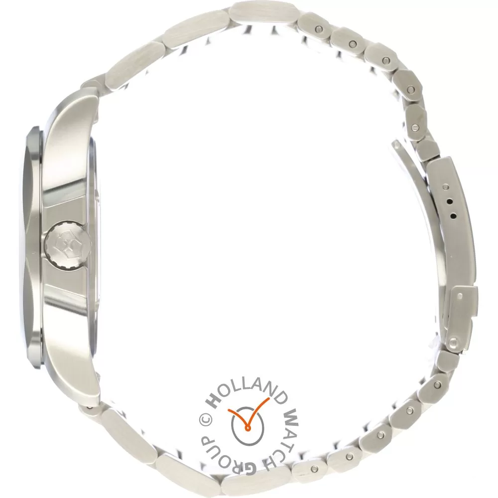 This Victorinox Swiss Army watch has a stainless steel case 43 mm in diameter and is fitted with a metal strap. Inside the case lies a ETA movement and the watch features a Sapphire crystal.